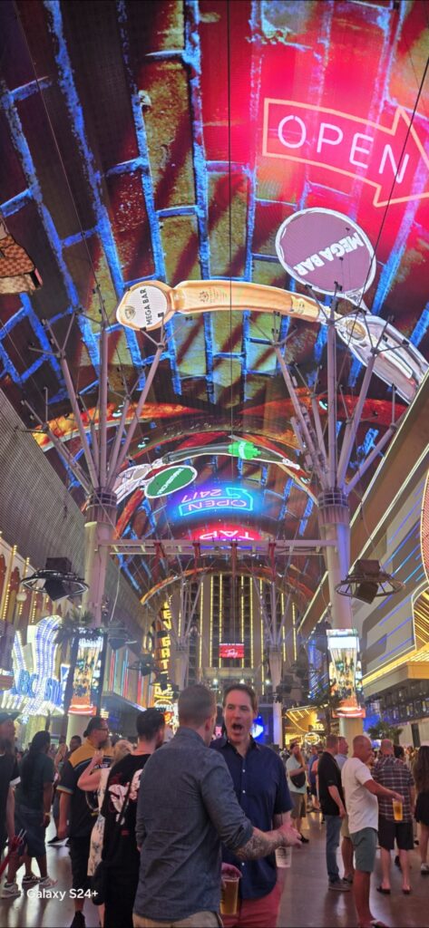 “La calle Fremont” estuvo de otro mundo. Hasta “zipline” en el techo con unos efectos y luces qué te dejan asombrada. Música en vivo y luces extraordinarias.