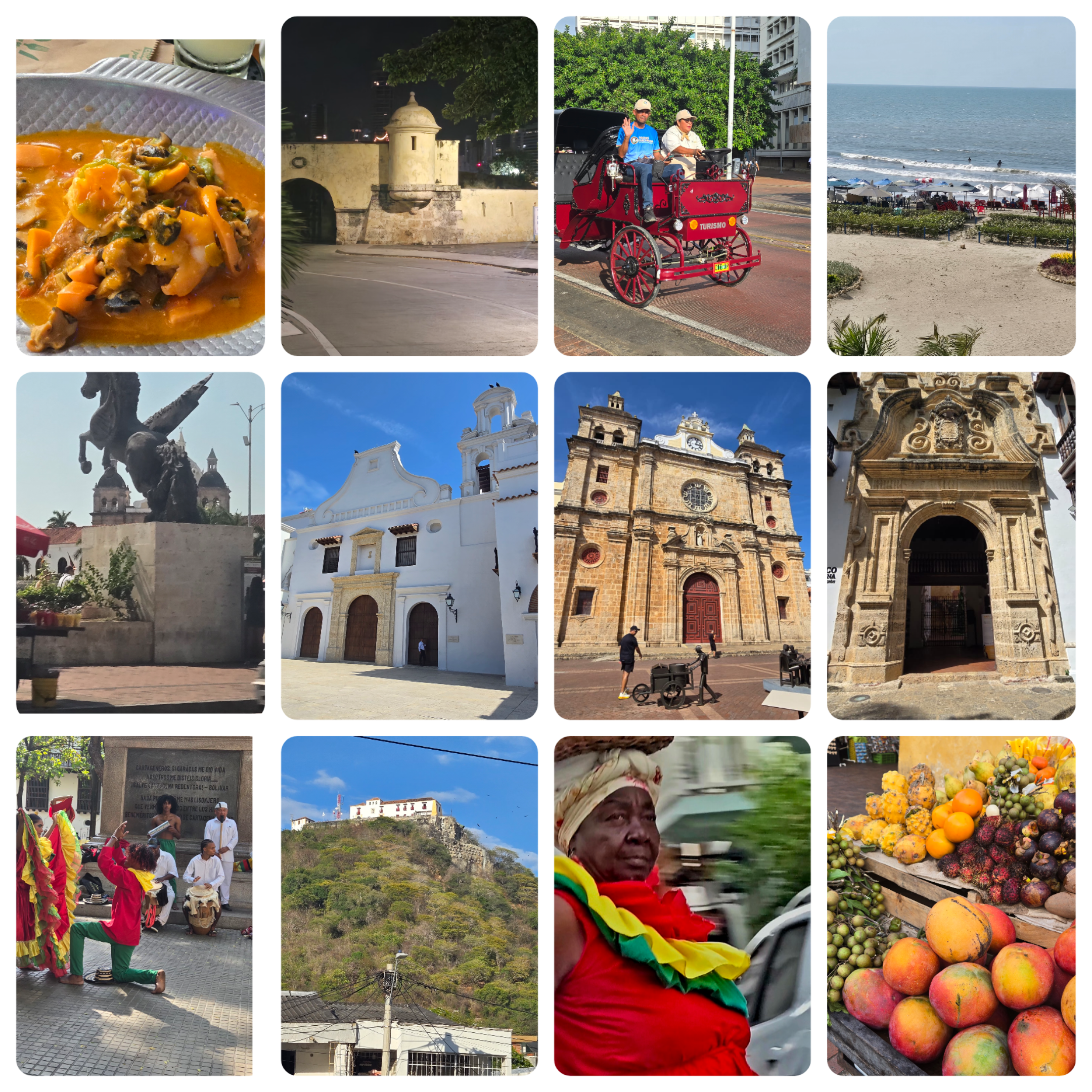 Salir a caminar el Centro (un barrio) no tiene precio! Es un contraste de cosas que lo hacen fuera de serie. Es ver el Parque Centenario que han renovado, la imponente Torre de Reloj, el Portal de los dulces, el Parque de Bolivar, la Inquisición, las iglesias como la Catedral y San Pedro por mencionar algunas y las callecitas llenas de color y estilo colonial. Es encontrarte con “una palenquera”, tomarte la foto con esas hermosas mujeres o probar dulces típicos. Es aprovechar un atardecer o un amanecer. Es ver grupos bailando con trajes típicos danzas o cumbia. Es valorar el trabajo manual y la creatividad.