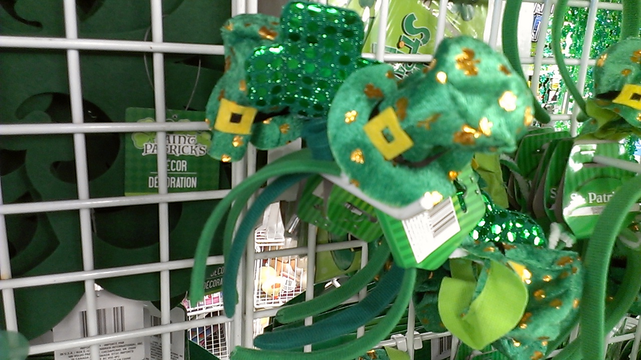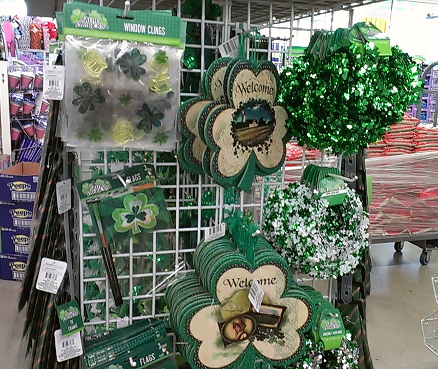 El comercio no para y los adornos representativos a este día están en todas las tiendas. Hay el mismo trébol verde, globos, jarras de cerveza, gorros, sombreros, collares, banderas y otras variedades. Feliz día!