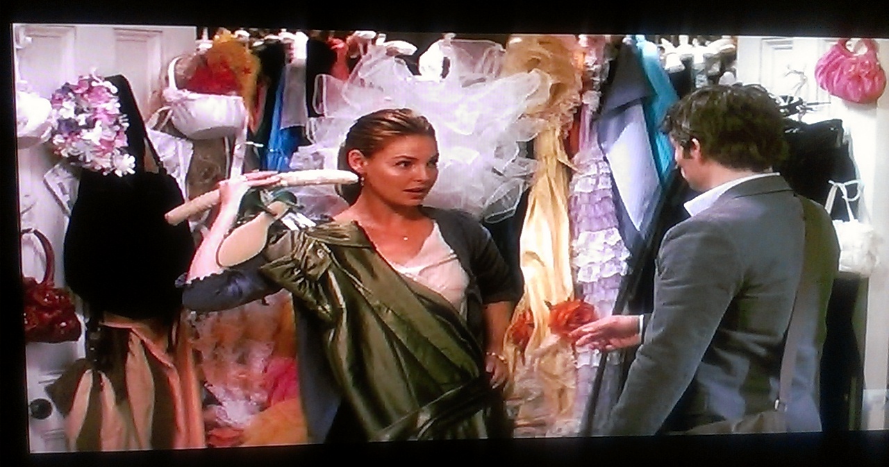 La hermana de Jane, Tess llega de visita y se conoce con el jefe de ésta (George) hombre del que ella ha estado enamorado secretamente. Tess y George deciden casarse y en los preparativos aparece Kevin que usa el nombre de Malcolm Doyle para escribir sus historias. Jane acepta darle información para la nota de Tess y lo deja pasar a su apartamento y él descubre que ella tiene todos esos vestidos. Finalmente la convence de probarselos y le toma fotos.