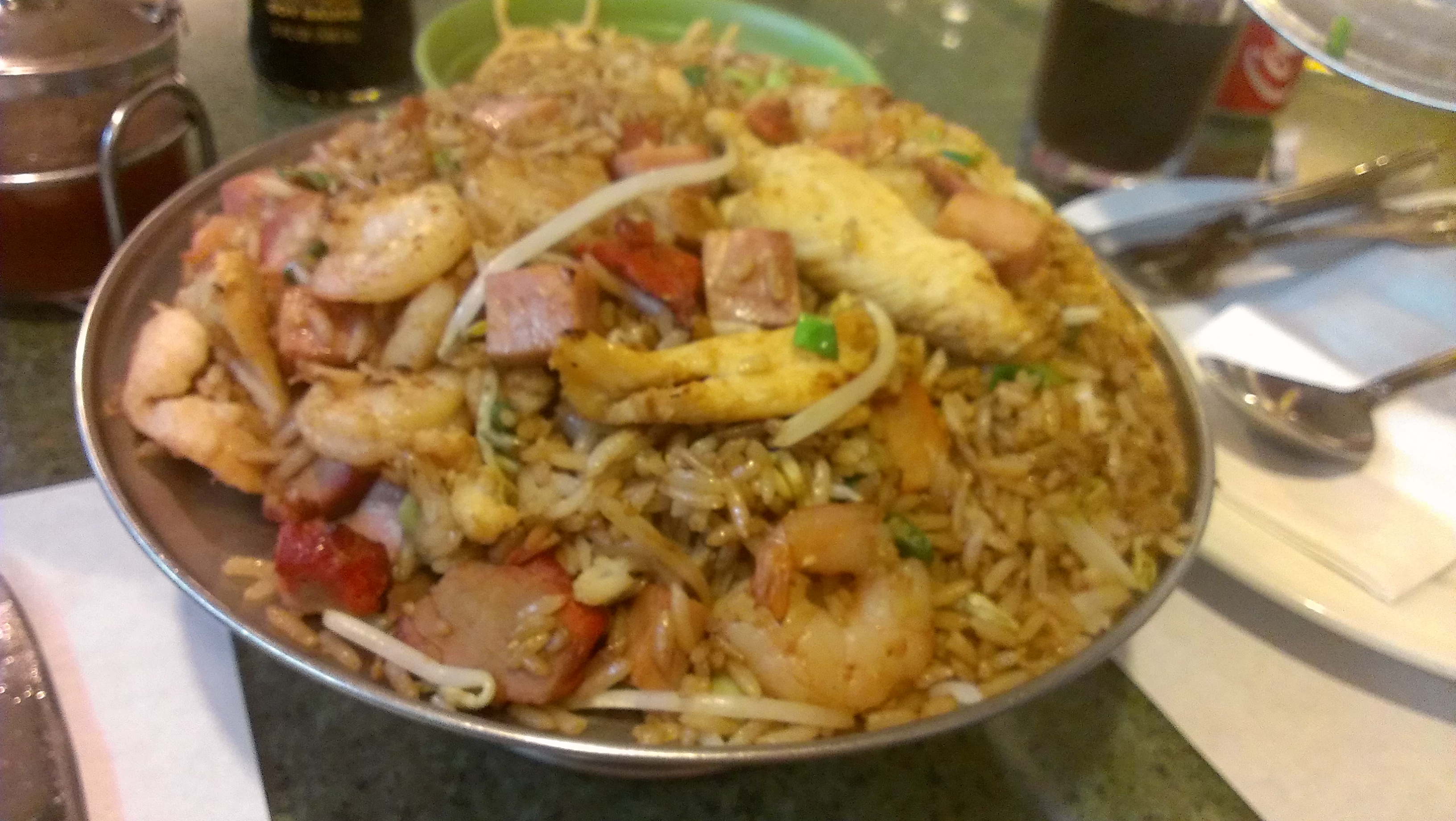Haciendo memoria de mi infancia, este plan de ir a comer comida china no podía faltar un domingo… Hoy en día, es una buena oportunidad de salir de la rutina, de no cocinar y de salir a disfrutar sin tener que preparar, ni lavar platos… sólo comer. Este es uno de mis platos favoritos cada vez que voy a un restaurante chino: “Arroz Chino”. Qué delicia!