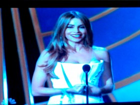 La serie donde ella trabaja “Modern family” recibió por quinta vez y de forma consecutiva el premio de “Mejor Comedia” este año con 10 nominaciones y 67 desde que comenzaron. Además, otro de los personajes de esta comedia, Ty Burrell se llevó el primer premio de la noche como “Mejor Actor de Reparto”.