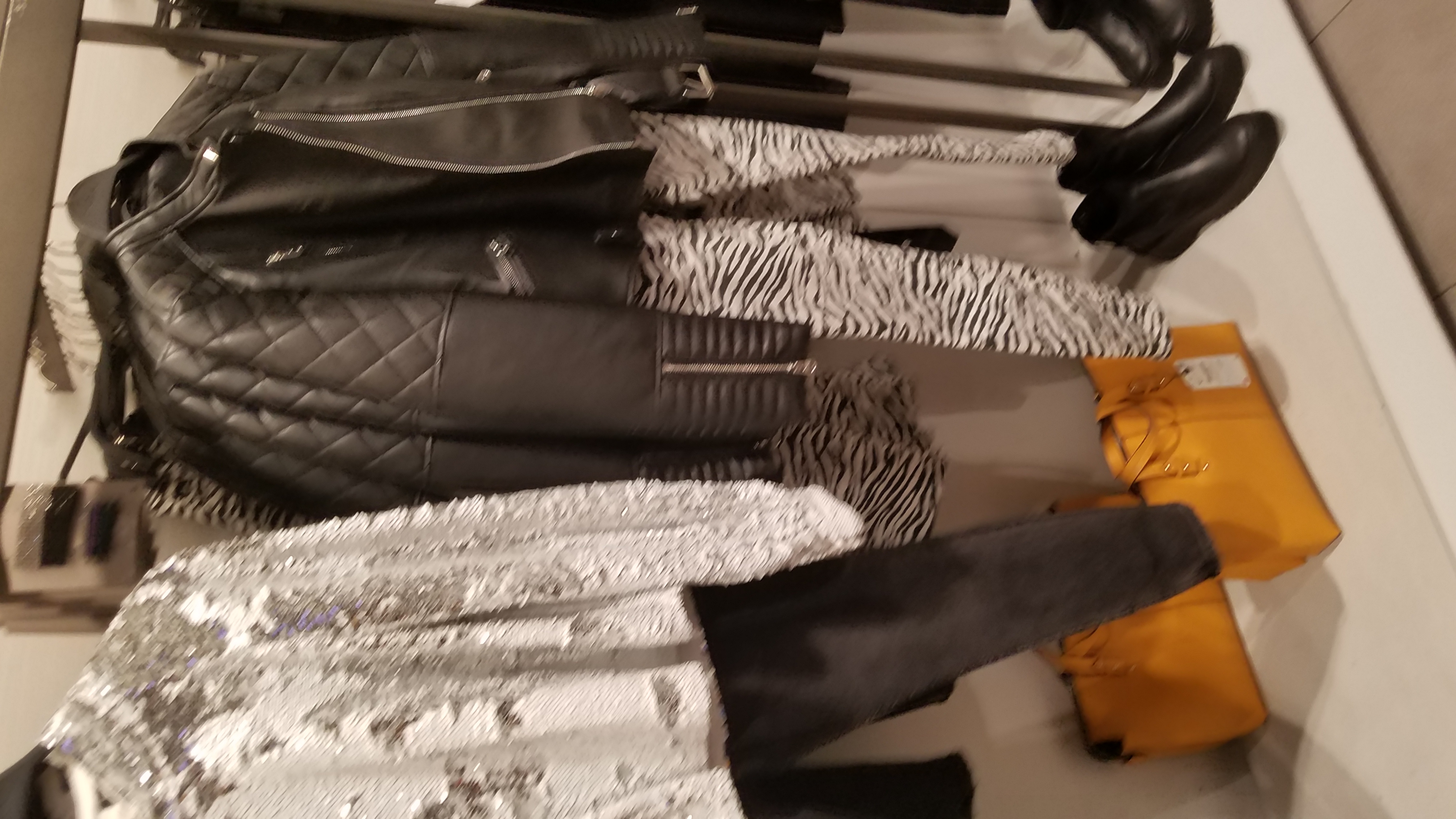 Paseando por varias tiendas en Miami, Florida encontré para todos los gustos… Otras formas, ese mismo diseño de tela de cuadros blancos y negros como la del empaque de una firma famosa ‘Chanel’ está en vestidos y chaquetas con unas telas que se ven como peludas y le dan un toque ‘chic’.