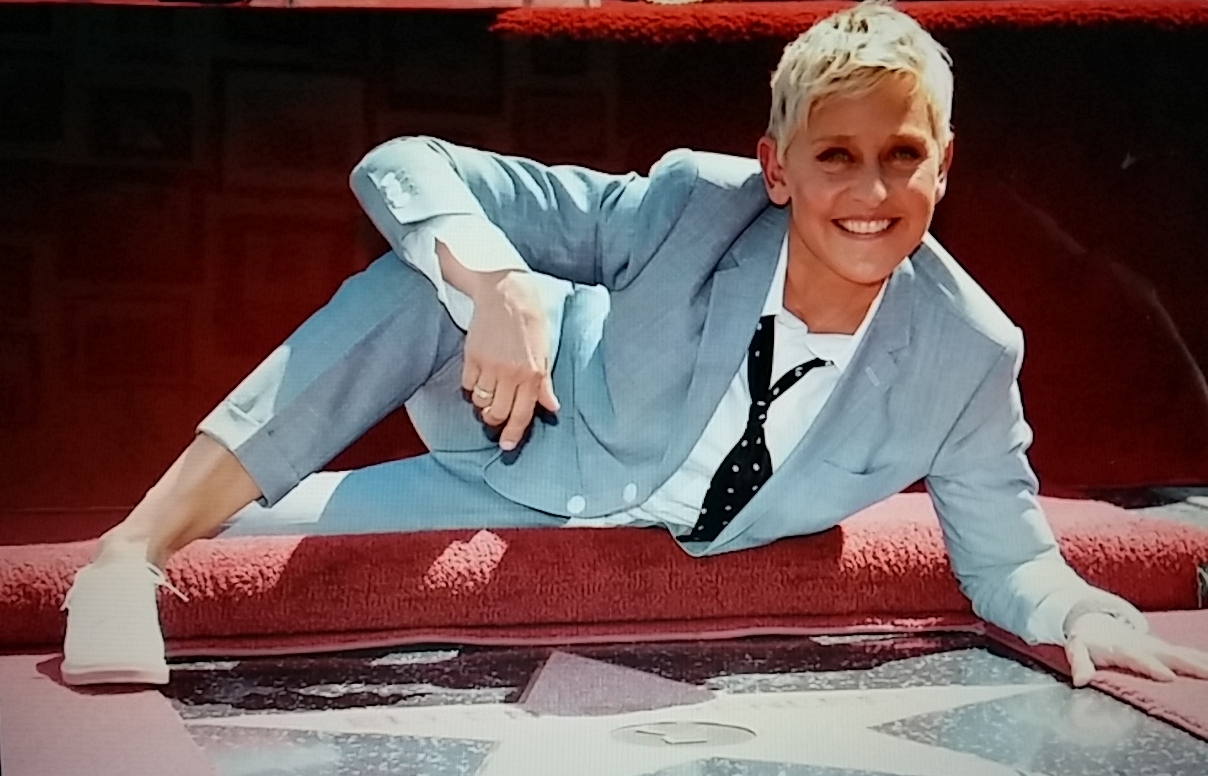 Esta carismática presentadora y humorista “Ellen DeGeneres”, recibió su estrella en Hollywood en el “Walk of Fame” o en español, en el “Paseo de la Fama”. Siempre con sus chistes contó que su mamá cuando era ella una jovencita le decía “que si seguía haciendo lo (mal) que estaba haciendo, terminaría en las calles de Hollywood”, y dice ella: “mi mamá tenía razón!” (está en el paseo de la fama), ja,ja… Buena por esa!